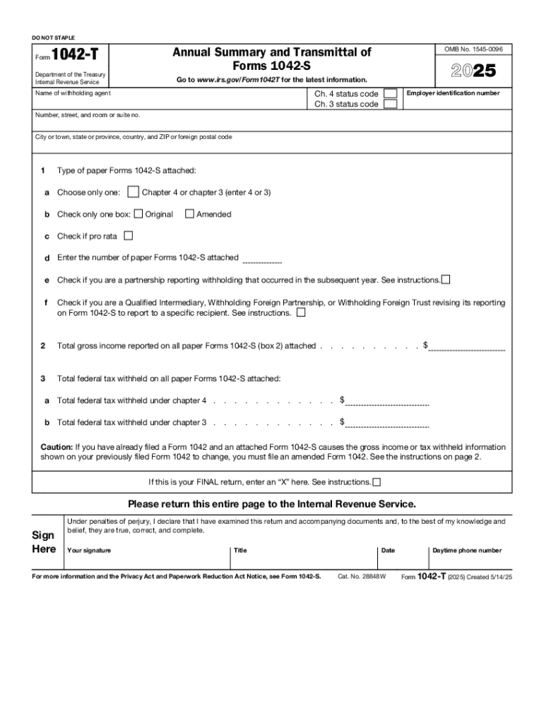 If you need to correct a mistake on your IRS 1042-T, you should file an amended version of the form. Ensure that you clearly indicate that the submission is a correction and provide the correct details. Follow the IRS guidelines for amendments to ensure proper processing.
